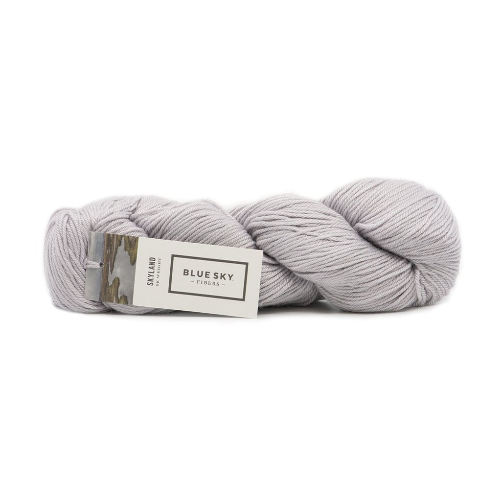 Blue Sky Fibers Skyland is a springy DK weight yarn with a soft halo and luxurious sheen to each hank. Generously sized hanks made up of a highland wool, alpaca, and silk blend with a beautiful drape, Skyland is definitely sure to stick out. This round, 4-ply luxury DK weight yarn is a great choice for textured accessories, shawls, and sweaters.