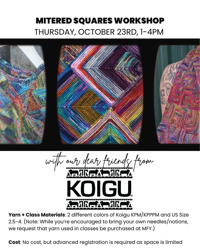 Learn the Koigu classic mitered square technique from Taiu & Merike from Koigu! Save your spot now!  ...