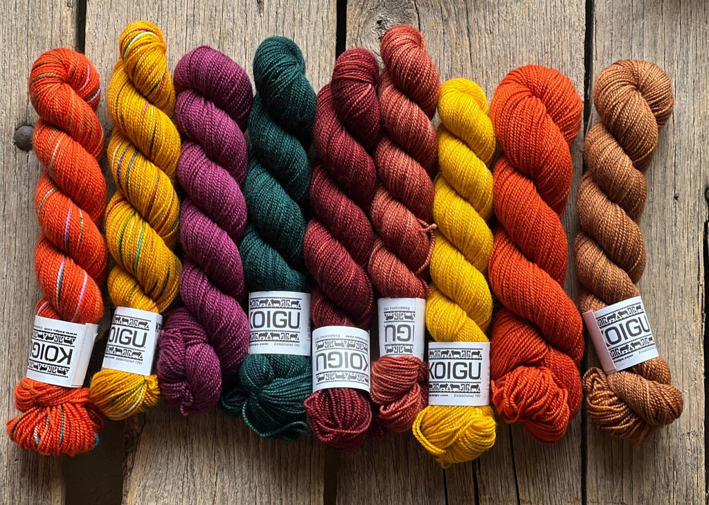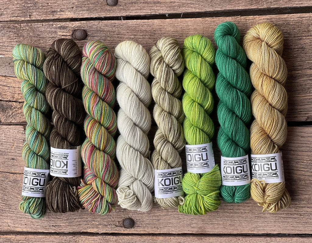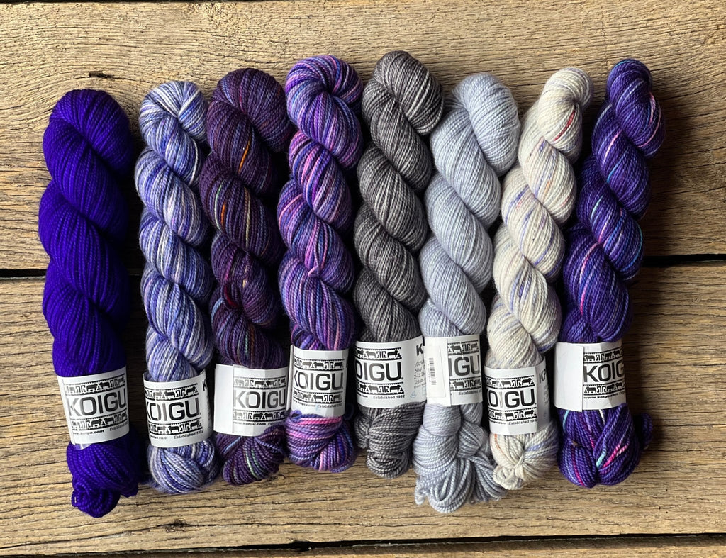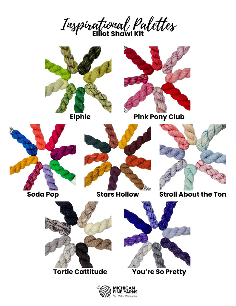 Each Elliot Shawl Kit features five skeins of Koigu KPM/KPPPM, hand-dyed in rich tonal and variegated hues that make every stitch sing. Choose from one of our curated color stories or select the Made For You option to have a custom palette hand-picked by the MFY team just for you!