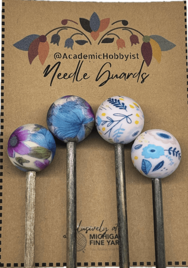 Made in the USA and curated in Chelsea, Michigan by the MFY Team, the Printed Spheres Needle Guards from AcademicHobbyist bring flair and function to every knitting project. These unique point protectors are not only practical but also beautifully adorned with various printed patterns, enhancing your crafting with a pop of artistic style. Ideal for securing your needle tips stylishly, these needle toppers are a must-have for knitters looking to add a touch of whimsy to their tools.