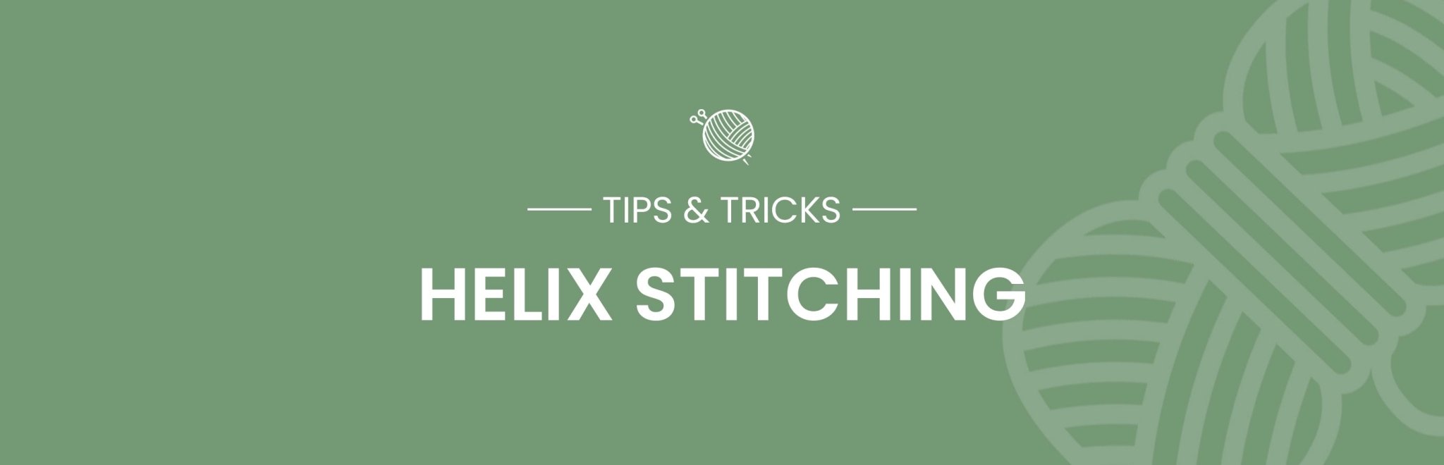 Helix or helical stitching creates interlocking spirals of single-row stripes with no perceptible beginning and no jogs between stripes. The helix can be created with two or more colors and requires no twisting to keep the yarns connected and stitches even. Beyond beautiful, seamless stripes, this method of stitching is also a neat and tidy way to alternate skeins of hand-dyed yarn.