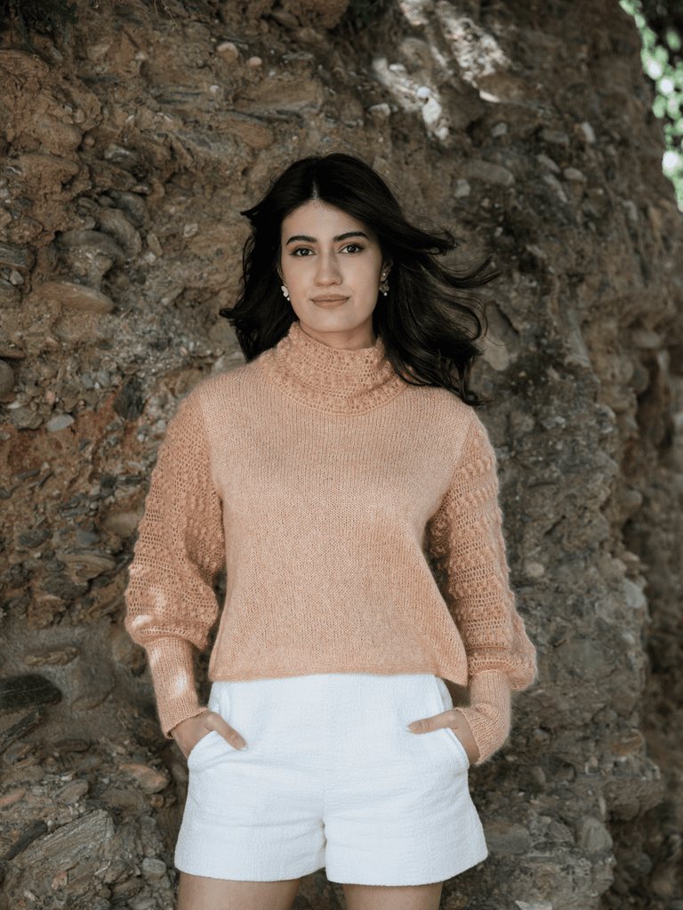About the Designer: Claudia Quintanilla is a Toronto-based knitwear designer and owner of the beloved yarn shop Eweknit & Craft. Born in El Salvador, she draws on her roots, life experiences, and artistic eye to craft designs that blend storytelling, cultural heritage, and modern elegance. She left her PhD studies in literature to follow her passion for designing knits that are both wearable and meaningful.