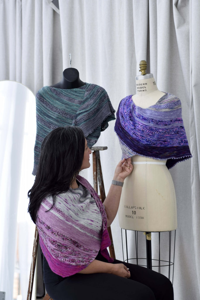Choose Your Palette: Complete your project with a curated Elliot Shawl Yarn Kit, featuring five hand-dyed Koigu skeins in stunning color palettes.