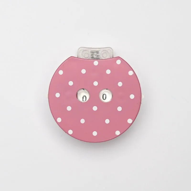 Track your knitting progress effortlessly with the KnitPro Row Counter Clicky. Keep on top of your rows with this handy-dandy blush pink polka-dot row counter. Just click after each completed row and you will always know exactly where you stand. No more tedious counting or marking down on nearby scraps of paper.